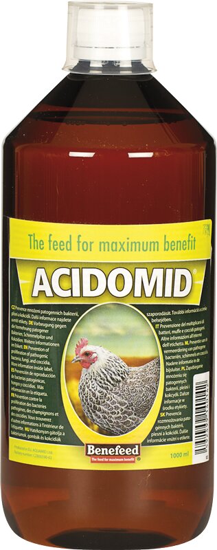 Acidomid je přípravek s preventivními účinky proti množení bakteríí, plísní a kokcidií pro drůbež.