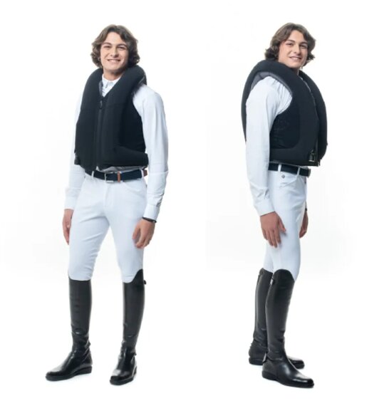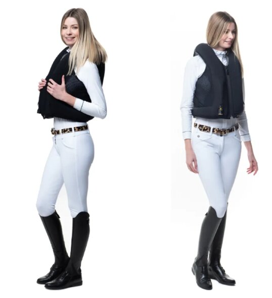 Vesta AIRBAG FREEJUMP je první airbagová vesta vyrobená se zaměřením pro jízdu na koni, která byla schválena normou NF S72- 800-202.