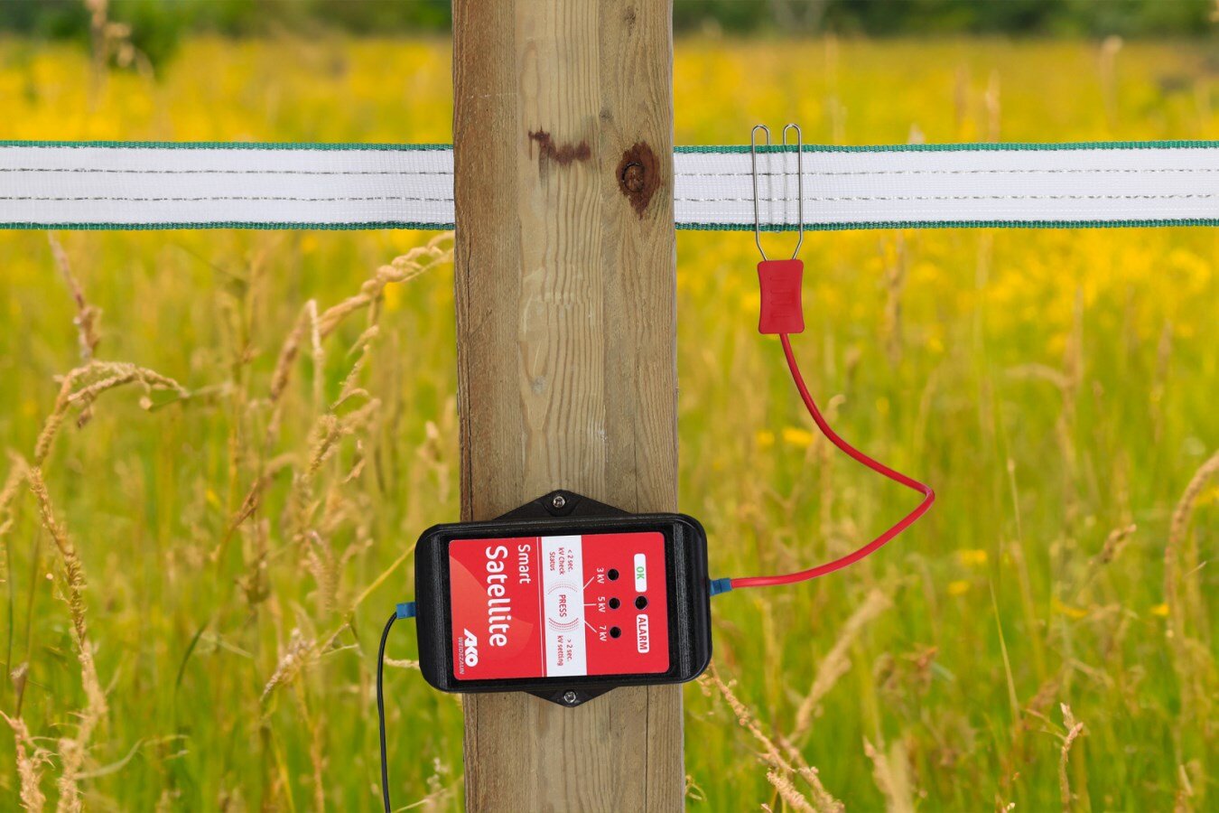 - Flexibilní použití: AKO Smart Satellite lze integrovat do jakéhokoli ohradníkového systému a použít ke všem typům ohradníků. Přesně měří napětí na plotě v daném místě a pravidelně odesílá hodnoty do aplikace.