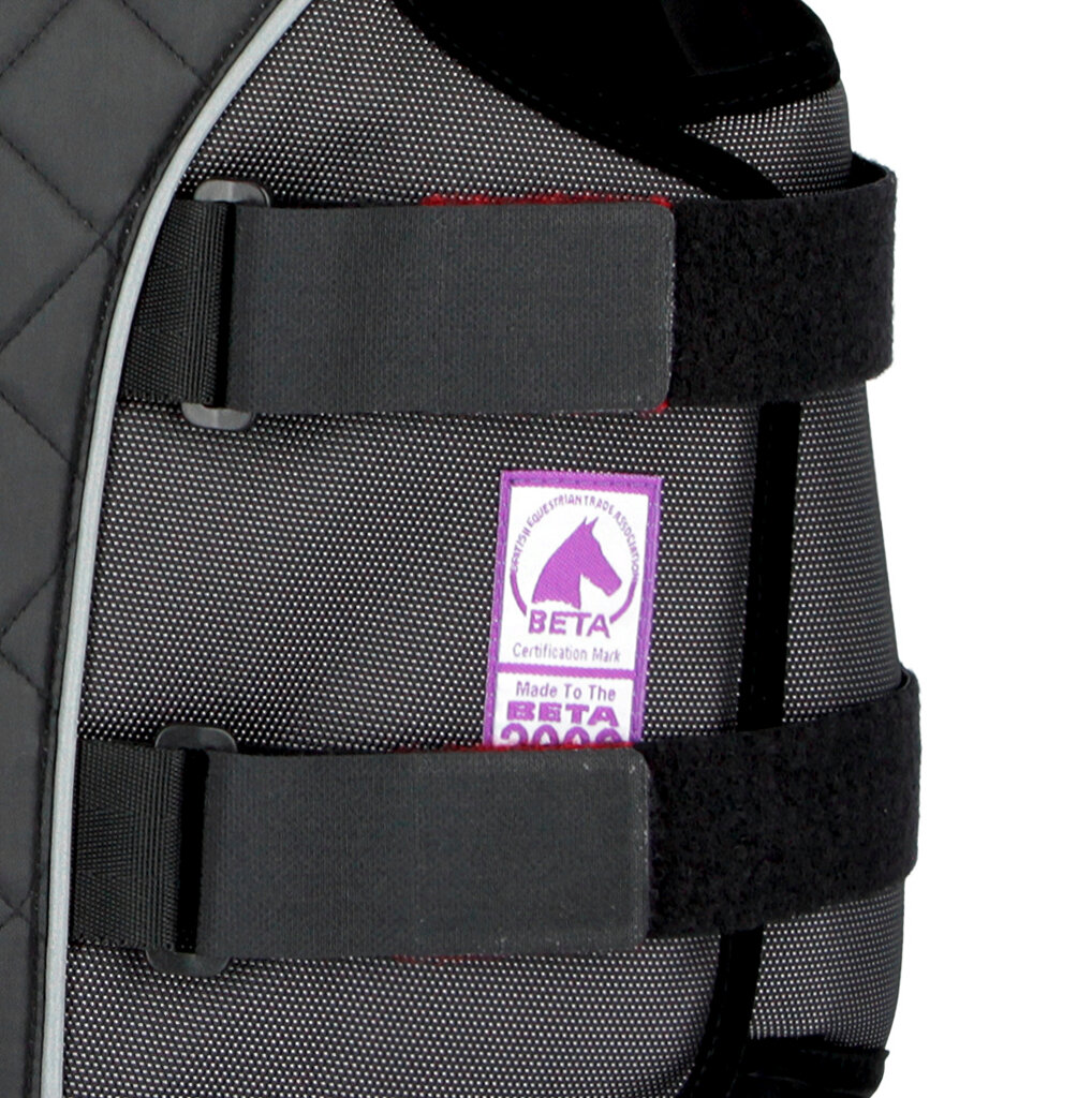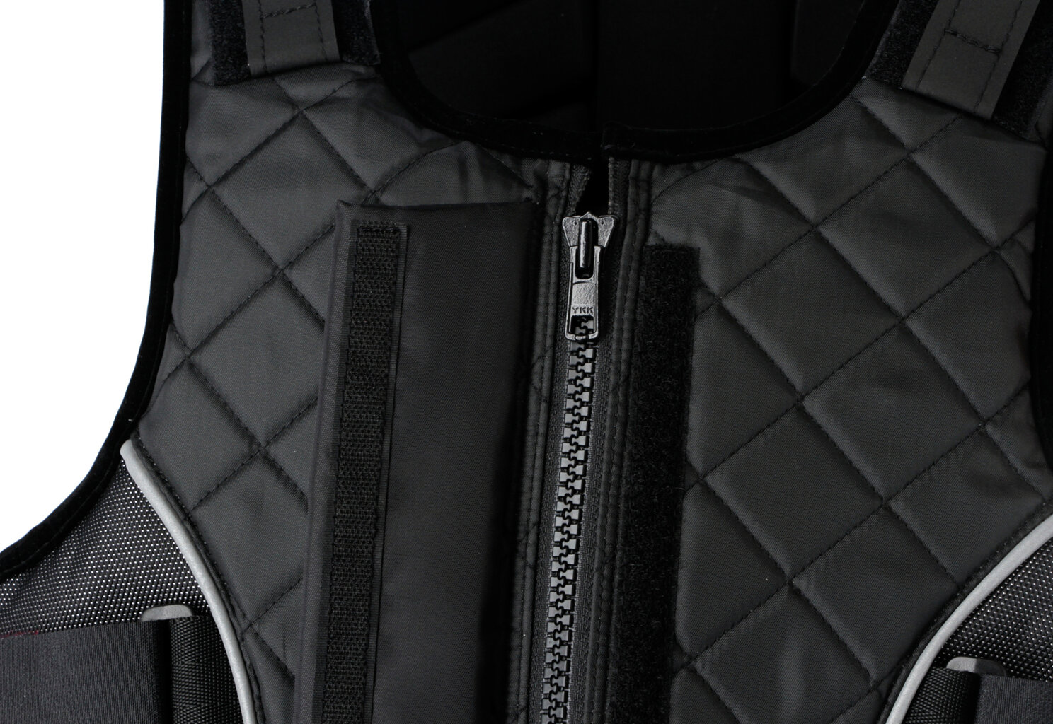 Bezpečnostní vesta splňující bezpečnostní standard Beta Level3 a EN 13258 Level3. Zapínání v předu na zip, klopa se suchým zipem, suché zipy na ramenou a v pase umožňují úpravu velikosti vesty. Déky tomu, že je vesta z menších dílů, dobře se přizpůsobí na těle, je pohodlná a nijak neomezuje pohyb jezdce.Výběr správné velikosti vesty je velice důležitý, aby mohla vesta splnit svůj účel. Vždy musí sedět těsně na těle. Obléká se na spodní vrstvy, větší mikiny a bundy se oblékají až na vestu.
