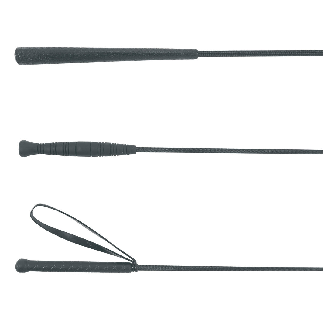 Lonžovací bič ze sklolaminátu opletený nylonem. Bič má neklouzavou rukojeť.