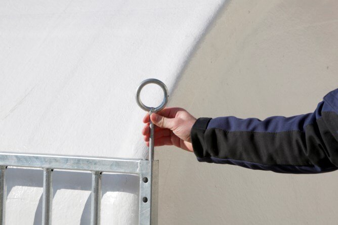 Na hřebeni přístřešku jsou nainstalovány zvedací třmeny pro snadné zvedání a transport.