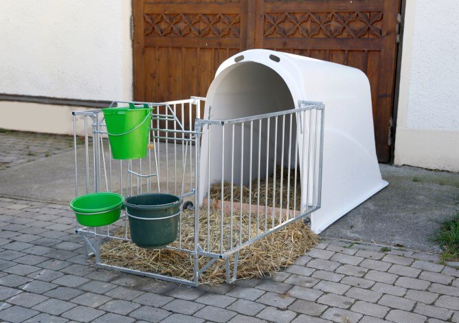 Svými velkorysými rozměry poskytuje teleti ochranu před povětrnostními vlivy a volný prostor pro ošetřování.