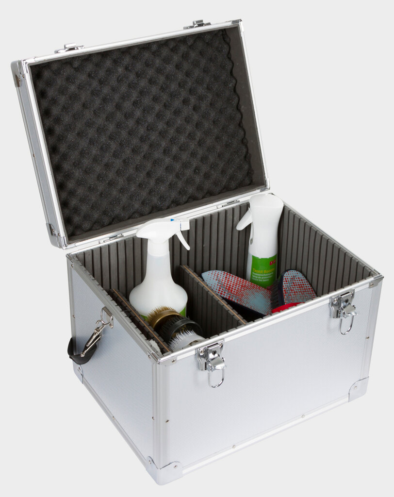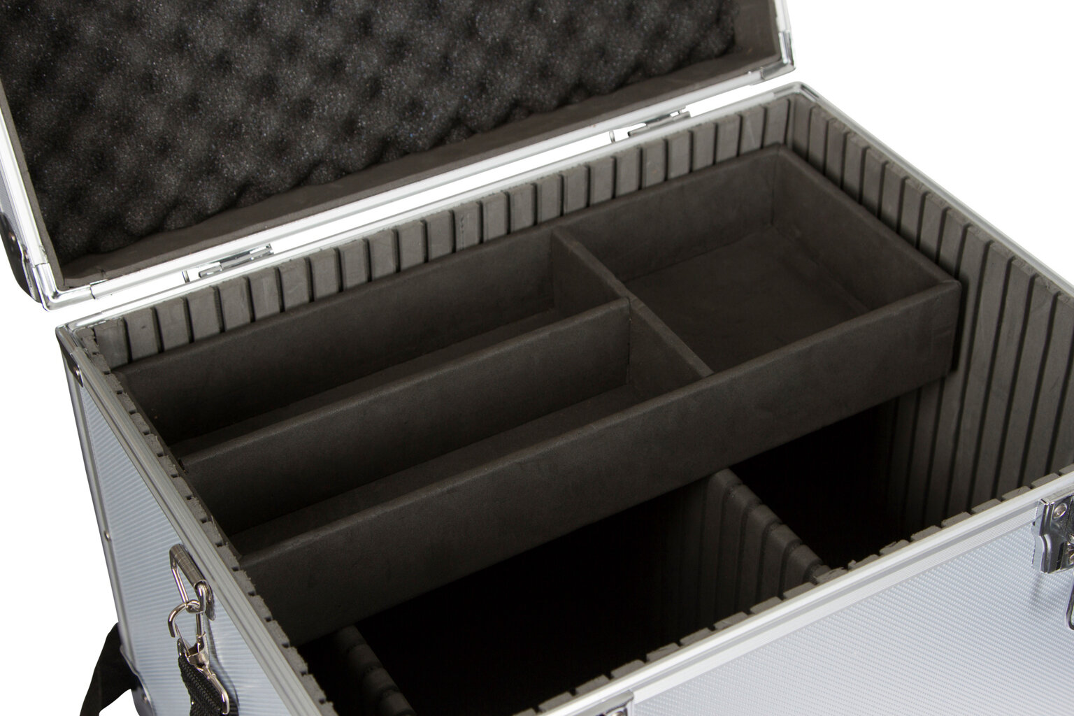 BLehký hliníkový box se zesílenými rohy a popruhem pro snadné přenášení.• dvě přepážky k idividuální úpravě vnitřního prostoru