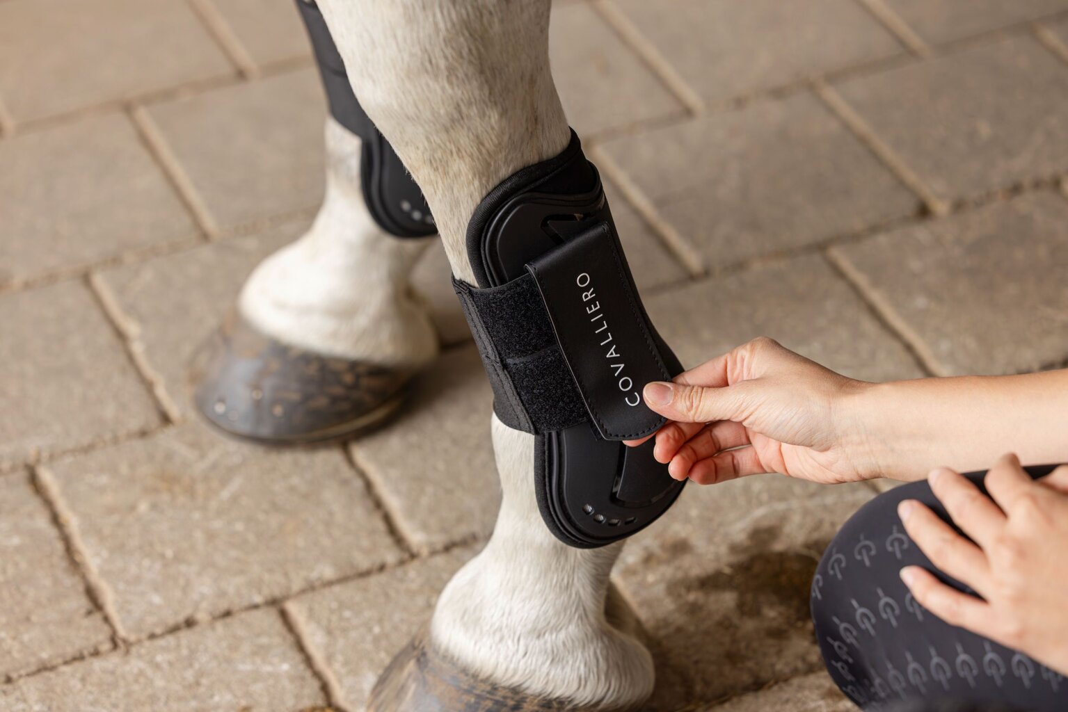 Chrániče Covalliero poskytují koni vynikající ochranu před poraněním a odíráním nohy koně během práce na jízdárně i vyjížďkách. Jsou vyrobeny z odolného materiálu, vypodložené měkkým neoprenem a mají robustní zapínání na suchý zip pro bezpečné a rychlé upevnění. Je zajištěna dobrá cirkulace vzduchu.