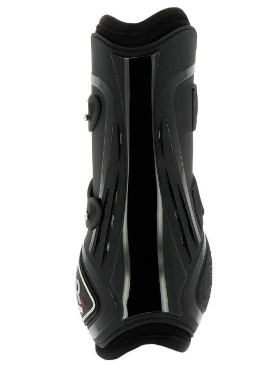 Speciální systém zapínání na piny (Button system) umožňuje rychlé a bezpečné nasazení i sejmutí, zatímco anatomický tvar zaručuje perfektní přilnutí k noze koně.