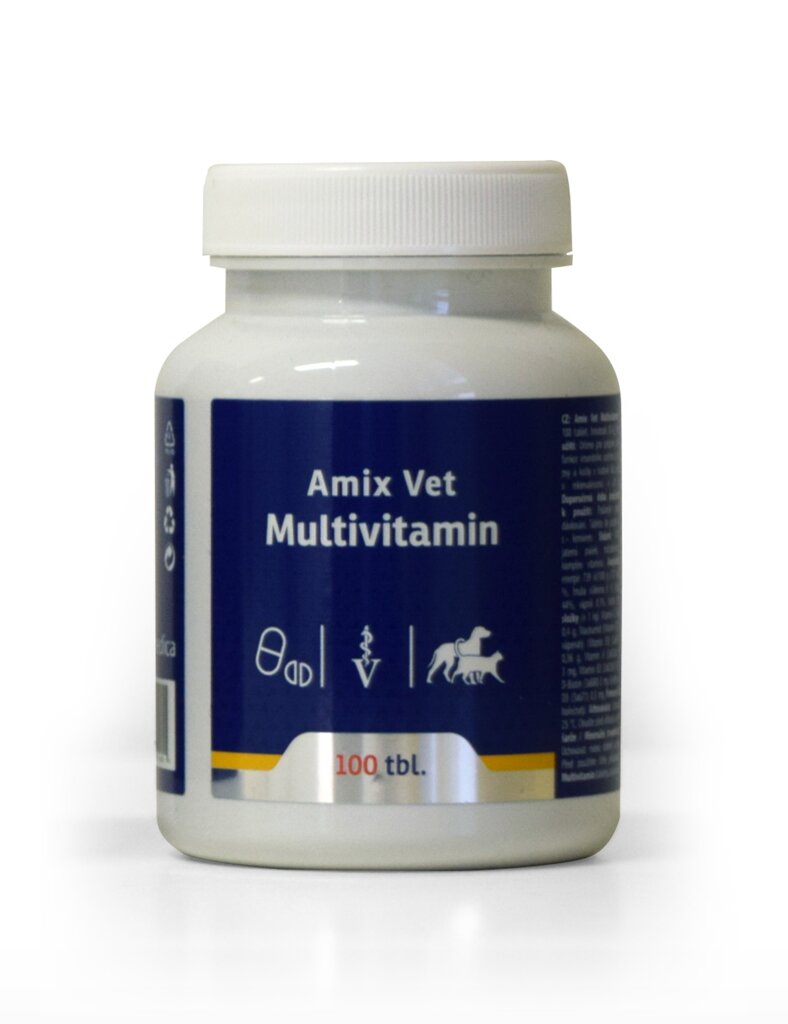 Cymedica Amix Vet Multivitamin je komplexní multivitaminový přípravek pro psy a kočky, určený k podpoře celkového zdraví, vitality a imunity. Díky vyváženému složení je vhodný pro každodenní užívání i pro období zvýšené fyzické či psychické zátěže, růstu, stáří nebo rekonvalescence. Přípravek přispívá ke zlepšení kvality srsti a kůže a podporuje správné fungování organismu. Ve formě chutných tablet, které většina psů a koček dobře přijímá.