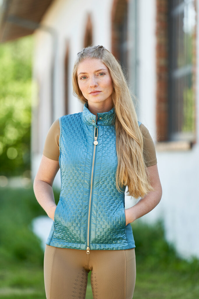 Dámská sportovní vesta z kolekce Covalliero je přesně pro vás, pokud dáváte přednost funkčnosti a volnosti pohybu. V oblasti boků je elastický materiál, který krásně obepne tělo, tělo vesty je vyrobeno z elastického prošívaného materiálů beze švů. Dvě skryté boční kapsy se zapínáním na zip udrží vaše cennosti v bezpečí aniž by vypadly. Vesta je skvělá jak při jízdě na koni, tak i na volnočasových aktivity