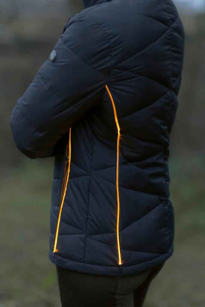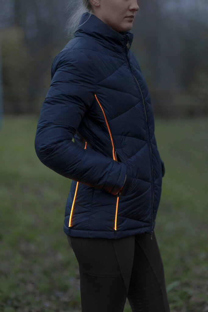 Dámská prošívaná bunda s LED osvětlením pro jízdu ve tmě nebo v mlze. Bunda je extrémně voduodpudivá, prodyšná má vypasovaný střih, obousměrný zip a 2 kapsy se zapínáním na zip.