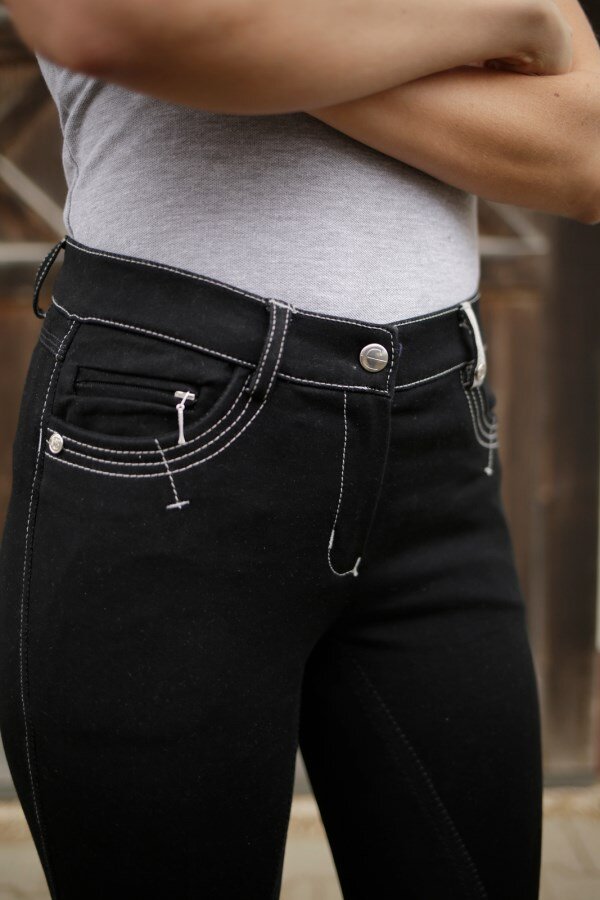Kalhoty mají celokožený grip, který poskytuje jistotu a stabilitu v sedle. Vyšší pas zajišťuje pohodlí při delším nošení a lichotivý střih zvýrazňuje ženskou siluetu. Praktické kapsy vpředu umožňují uschování drobností.