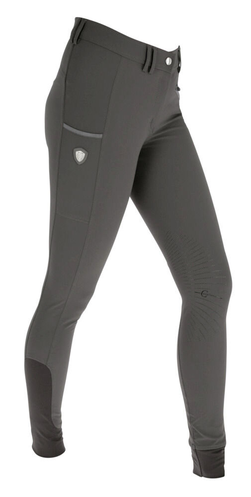 Dámské jezdecké kalhoty Bali z vysoce elastického materiálu se silikonovým potiskem CovallieroGrip na kolenou pro lepší přilnutí k sedlu a praktickou přední kapsou se zapínáním na zip. Nohavice jsou zakončeny elastickou manžetou z materiálu ElastoSoft.• velmi příjemná tkanina