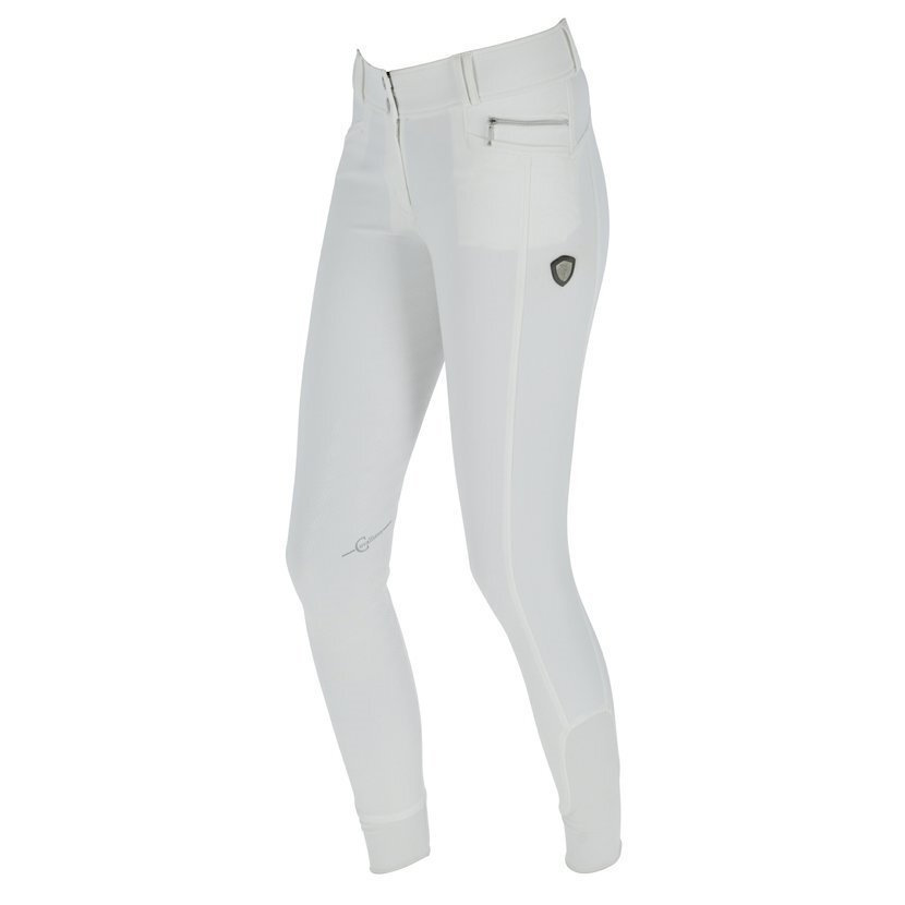 Dámské jezdecké kalhoty s celoplošných silikonovým potiskem, dvěma předními kapsami, kapsou na mobilní telefon. Zakončením nohavic pohodlnou, elastickou manžetou ElastoFlex.