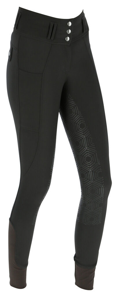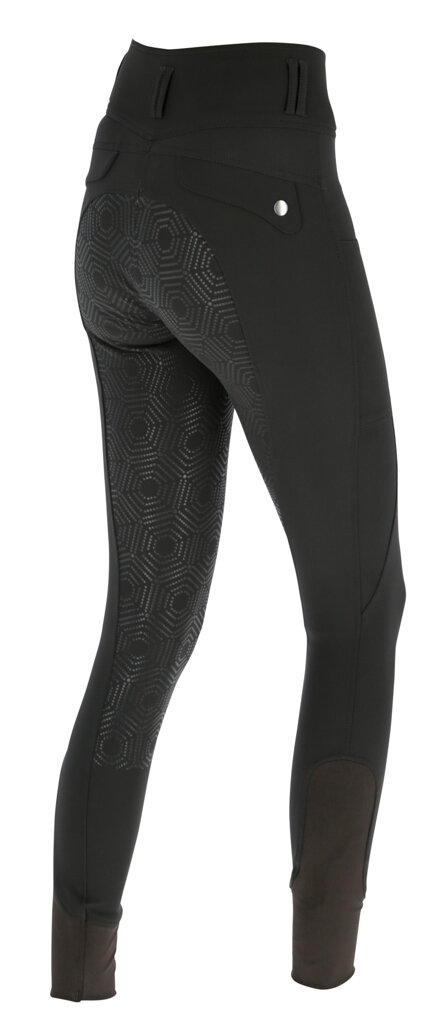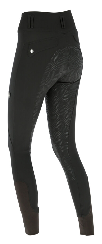 Elegantní dámské jezdecké kalhoty s vysokým pasem s celoplošným silikonovým potiskem CovallieroGrip. Měkký, lehký prodyšný materiál regulující teplotu. Praktická kapsa na mobilní telefon