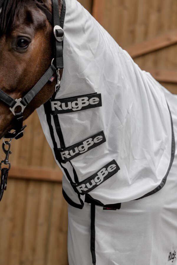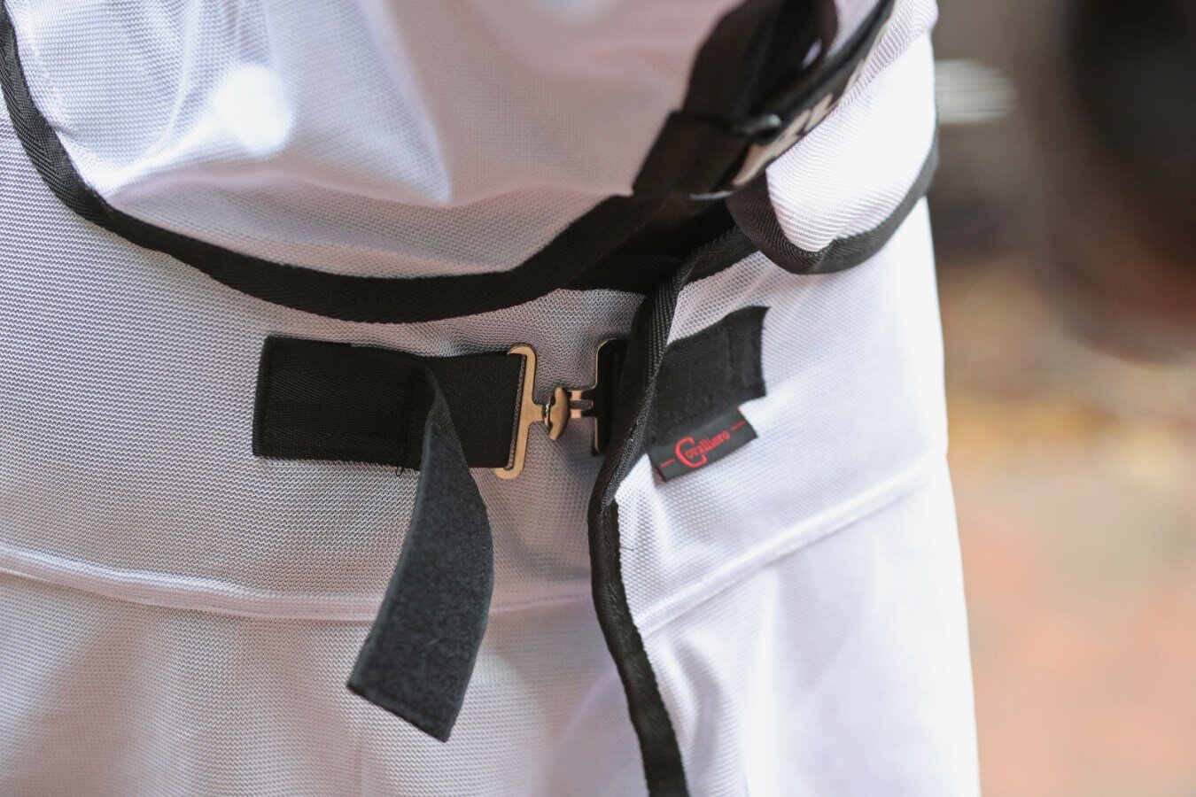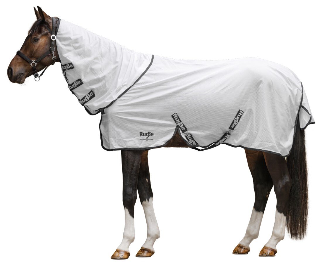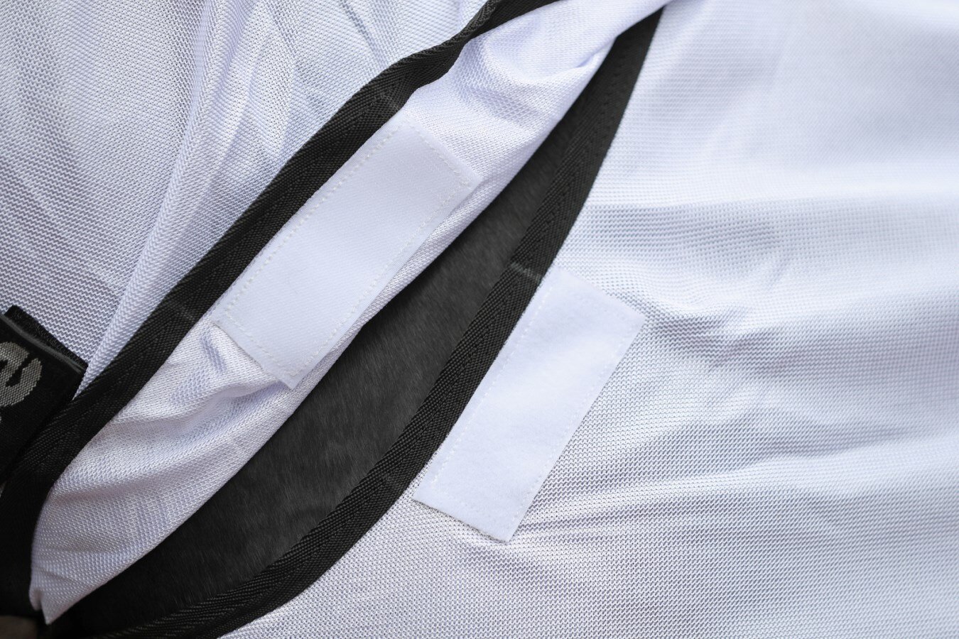 Jemná síťovina z měkkého polyesteru spolehlivě chrání kůži koně bez podráždění. Deka má odepínací krční díl a elastické popruhy na nohy, které zabraňují sklouznutí. Velká ocasní klopa, podšitá hrudní část a zapínání na suchý zip v oblasti krku a hrudníku zajišťují maximální komfort a funkčnost.