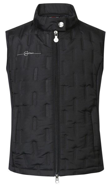 Lehká, sportovní, kombinovaná dětská vesta z elastického materiálu po bocích a prošívaného polyesteru. Vesta má stojáčkový límec s páskem na druk, obousměrný zip a výšivku Covalliero na pravé straně.