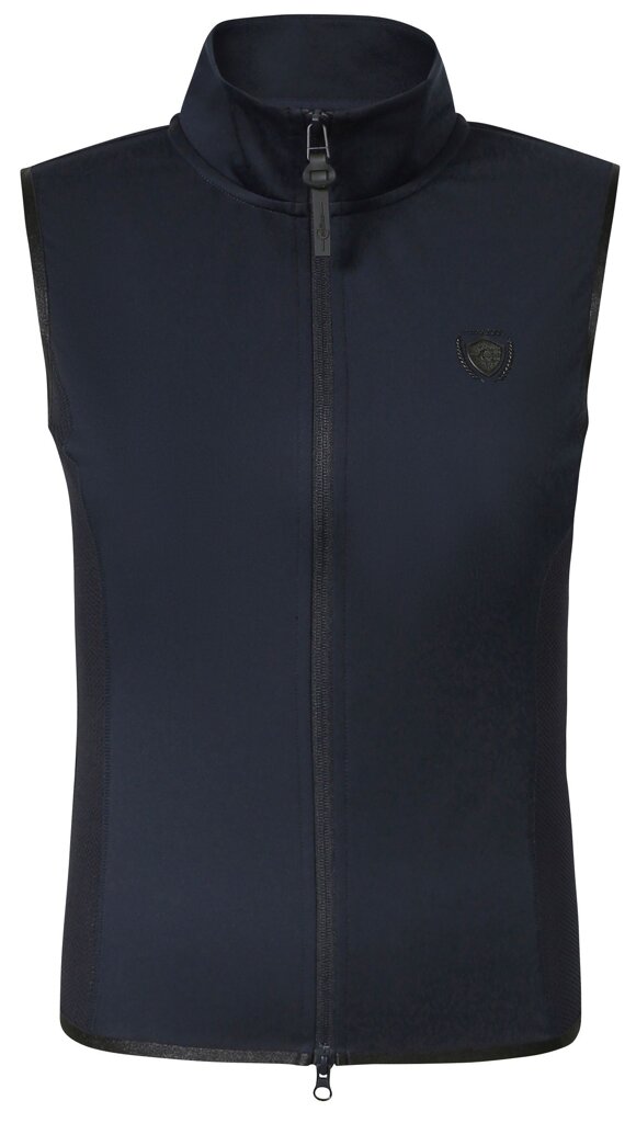 Super lehká, sportovní, jezdecká vesta s vsazeným síťovaným materiálem po bocích. Tuto vestu si zamilujete díky její lehkosti, prodyšnosti a možnosti volného pohybu. Průramky a spodní díl vesty je olemován elastickým materiálem v kontrastní barvě. Díky elastickému lemování krásně přilne k tělu.
