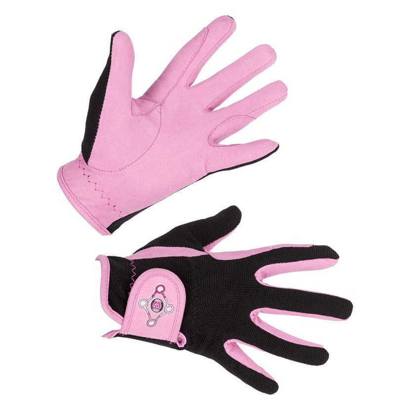 Odolné dětské jezdecké rukavice z umělé kůže, vyztužené v oblasti držení otěží, možnost nastavení v oblasti zápěstí pomocí suchého zipu.• odolné materiál imitace kůže