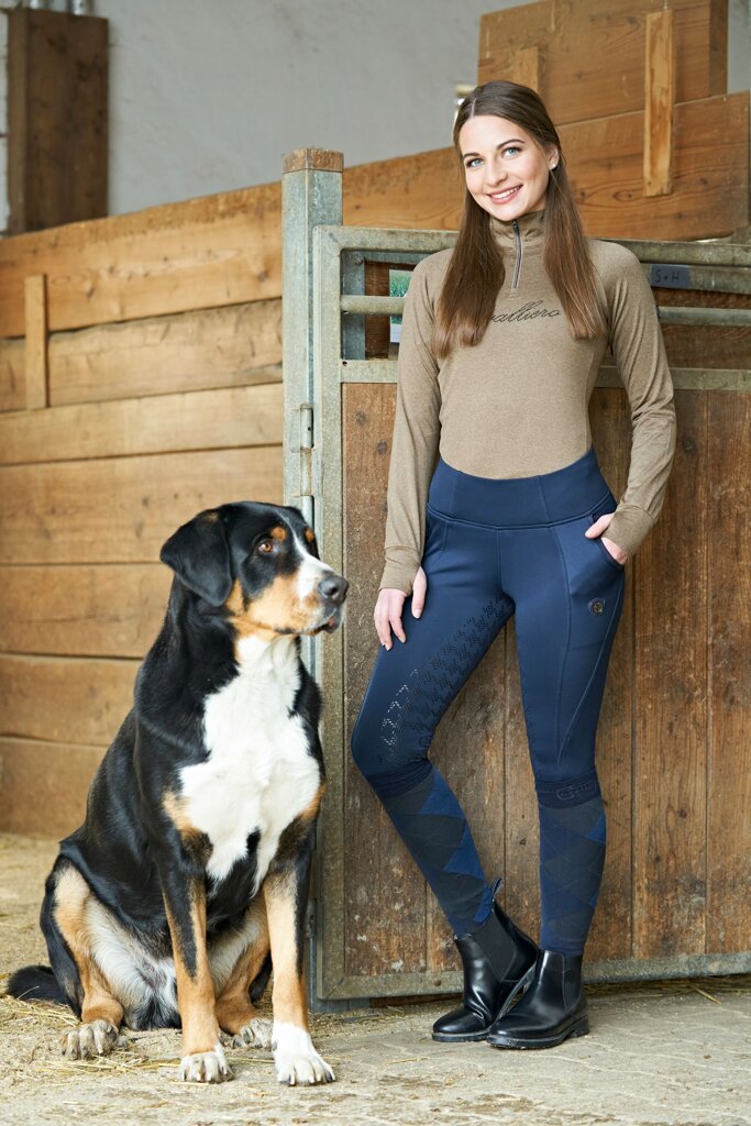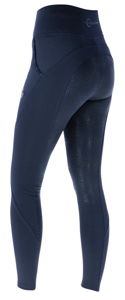 Dětské jezdecké legíny s kvalitního materiálu podobnému softshellu s teplou vnitřní částí, se silikonovým potiskem CovallieroGrip po celé části sedu. Díky extra širokému pasu jsou legíny velice příjmné na nošení - nikde nic netlačí. Výbornou věcí je praktická elastická kapsa na mobilní telefon.