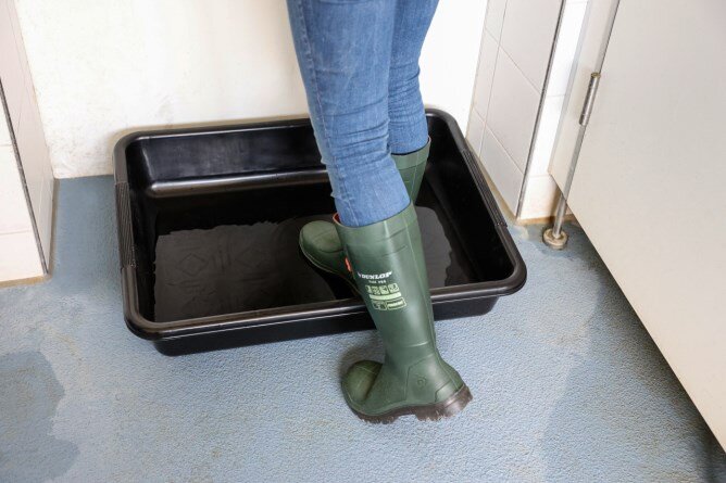 • jednoduchá a rychlá možnost dezinfekce bot pro zábranu vnesení choroboplodných zárodků do stáje