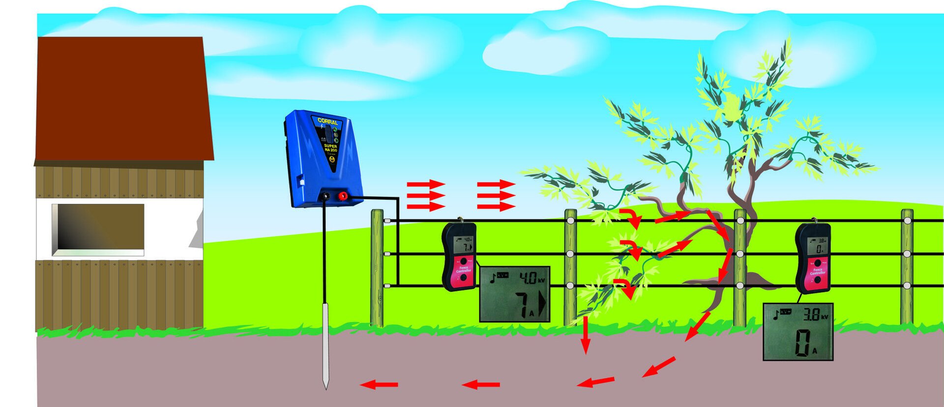 Je nutné na každém místě ohrady naměřit hodnotu minimálně 2.500 až 3.000 V, což je hodnota, která překonává odpor kůže u zvířat.