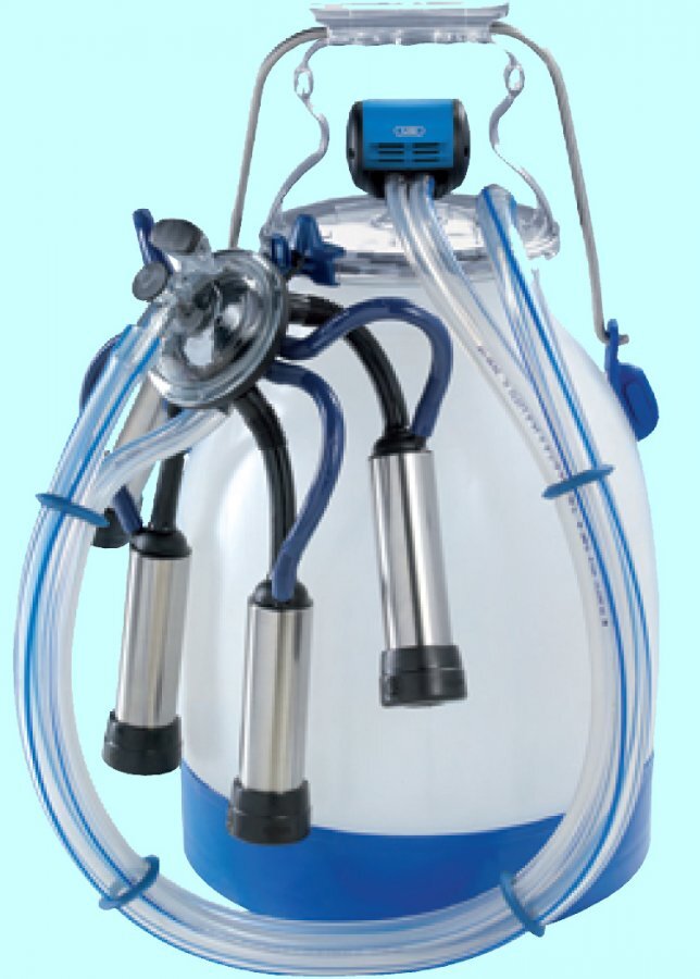 Dojící konev pro skot se sběračem LUNIK, pulzátorem L02, strukovými návlečkami IPL 01 a nerez pouzdry