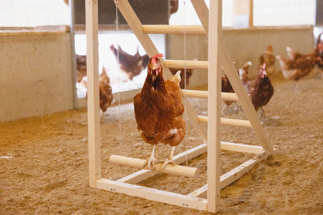 - Sbohem nudě: houpačka poskytuje kuřatům další místo k sezení a vynikající aktivitu. Kuřata milují houpání. Podporuje to jejich fyzickou i duševní aktivitu zároveň.