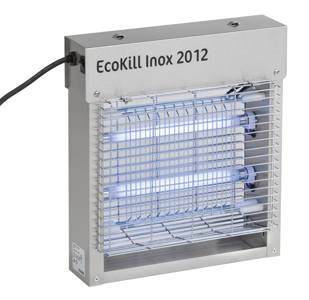 Elektrický lapač much s vysoce kvalitním krytem z nerezové oceli. Všechny modely EcoKill Inox jsou testovány TÜV-GS a jsou vybaveny UV lampami s dlouhou životností.