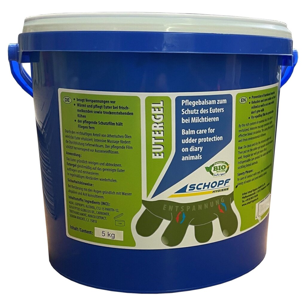 - Osvědčený prostředek Eutergel je velmi kvalitní ošetřující gel zelené barvy na bázi rostlinných výtažků k ochraně vemen u mléčného skotu.
