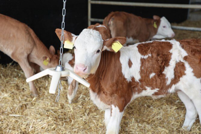 • pro připevnění ke stájím nebo krmným miskám: vysoce atraktivní, protože se dá otáčet