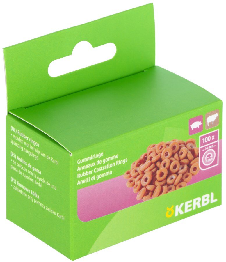 Gumové kroužky určené k použití při kastraci hospodářských zvířat. Aplikují se pomocí upínacích kleští na kastrační kroužky.