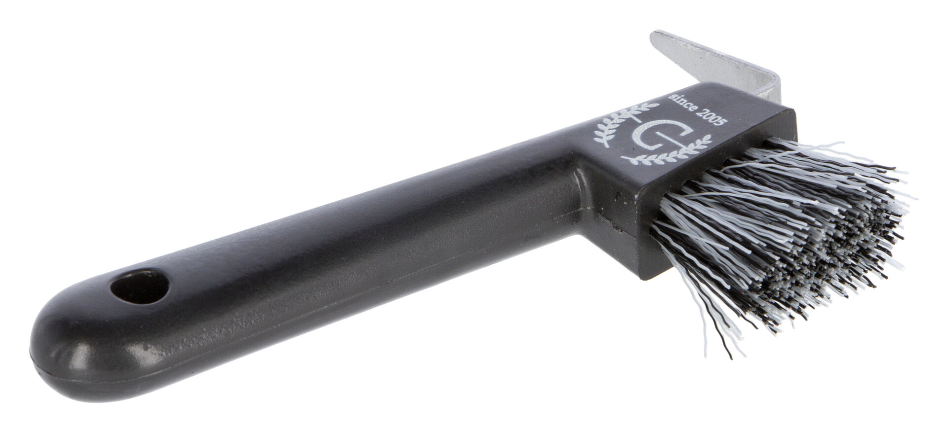 Háček na kopyta s kartáčkem vyrobený z robustního plastu s polypropylenovými štětinami.Zákazníci hodnotí