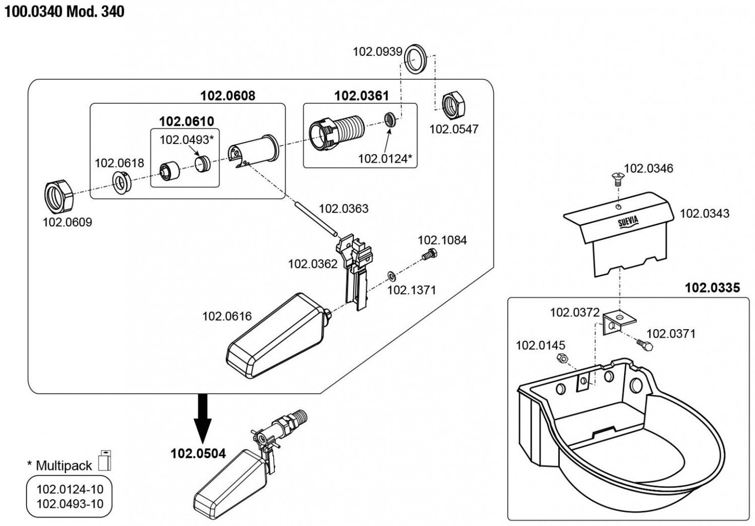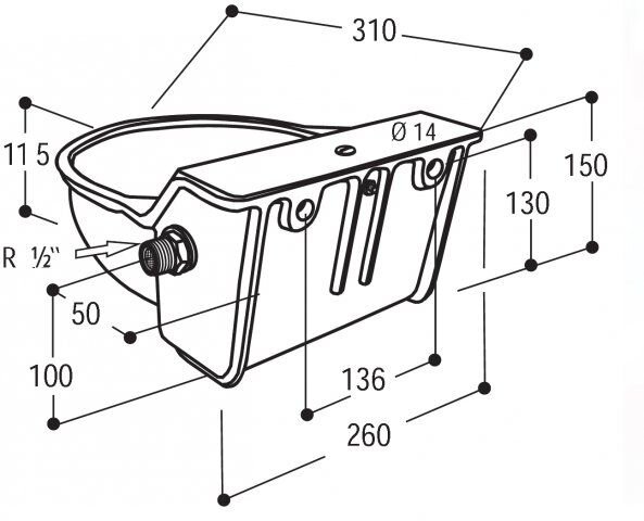 - hladinová napáječka pro skot (i pro býky s nosním kroužkem), telata, koně, ovce, kozy a psy
