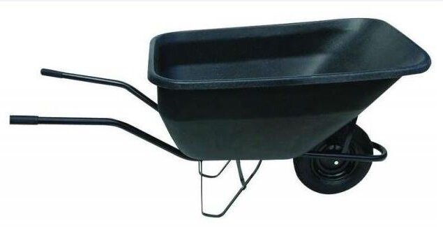 Kovová kontrukce kolečka je doplněna korbou z odolného plastu (plast s vyšší odolností ve srovnání s kolečky 210 l) a nafukovacím kolem.