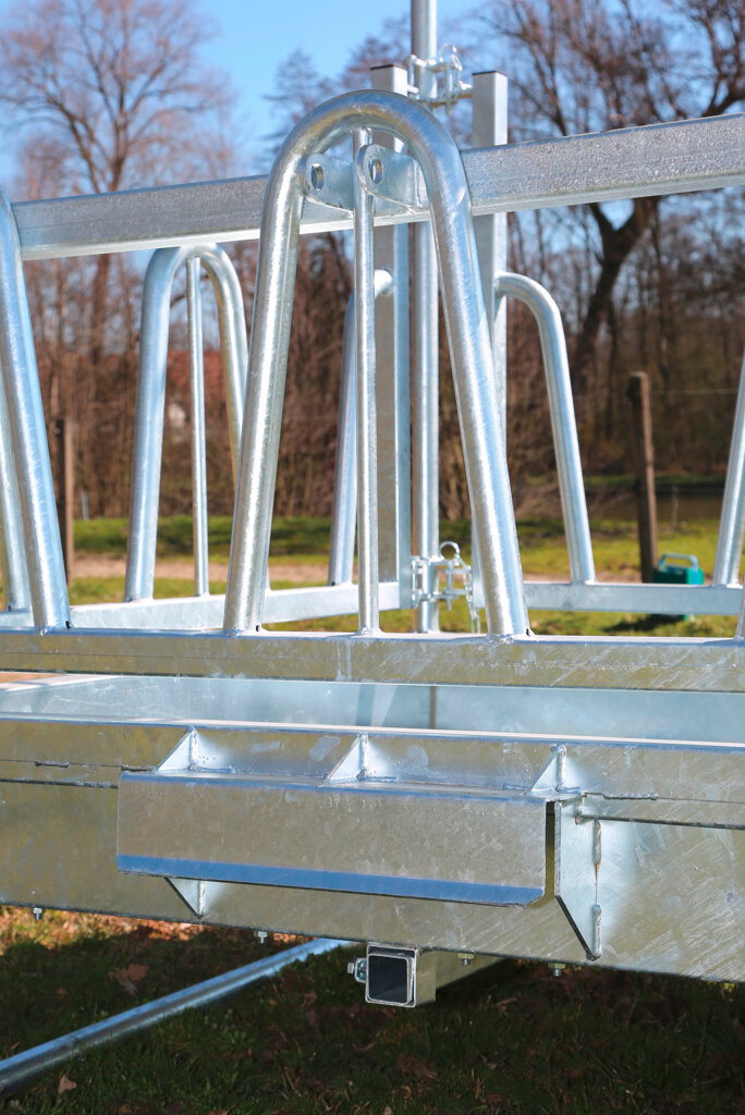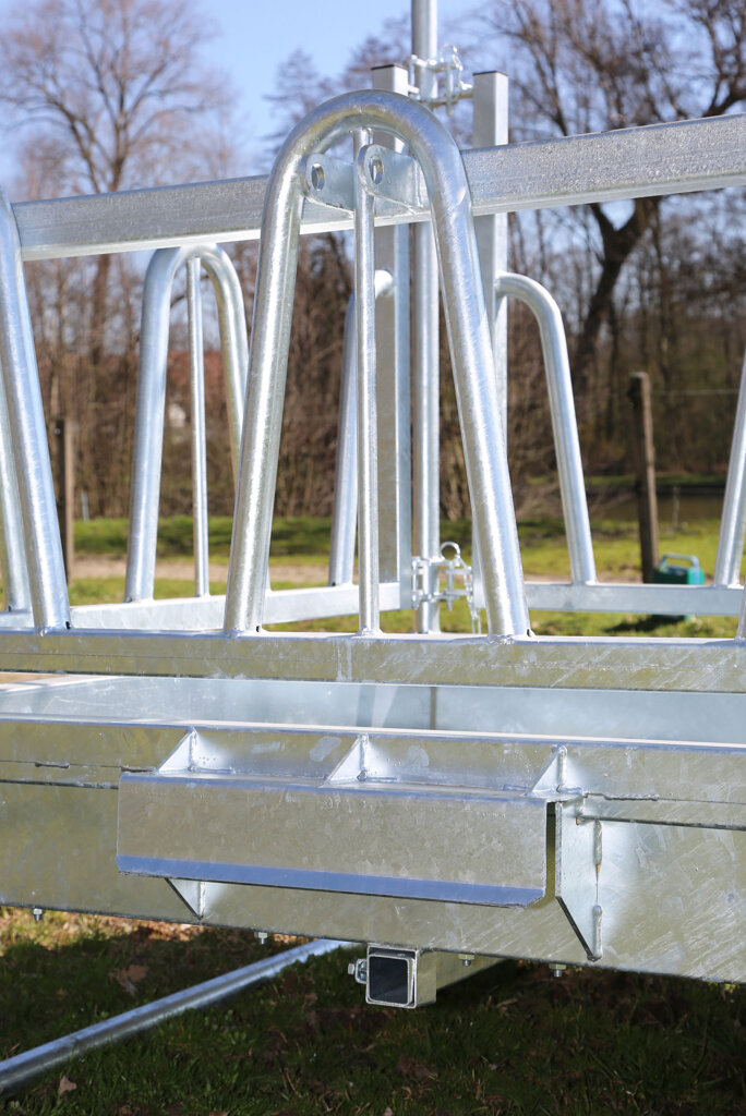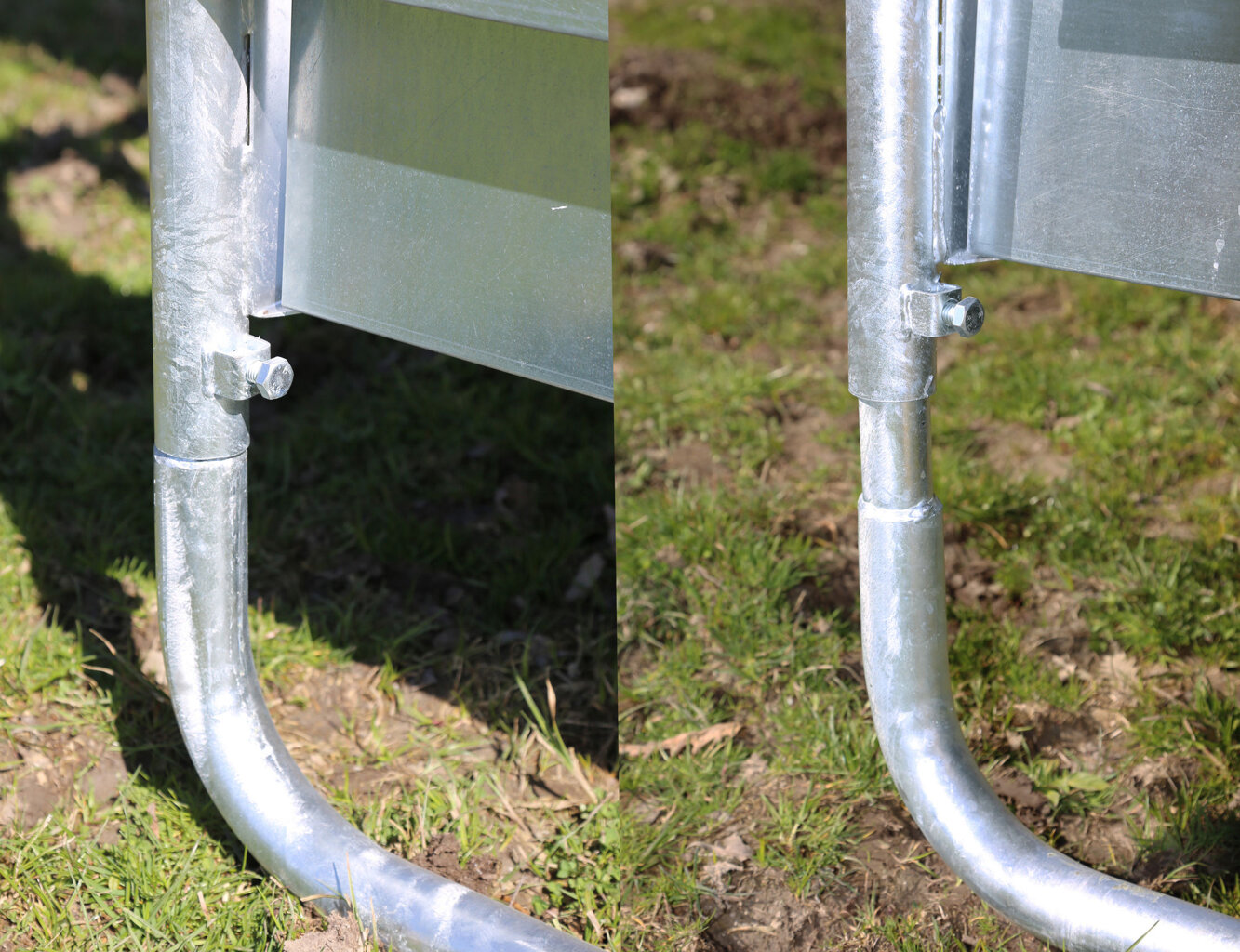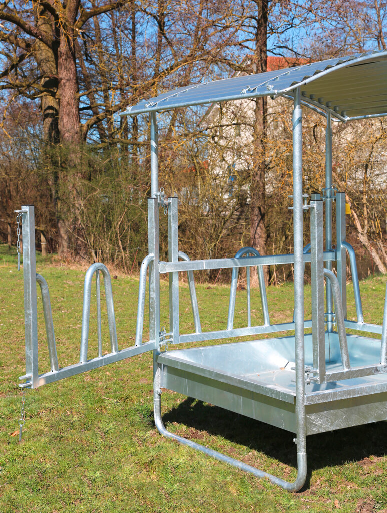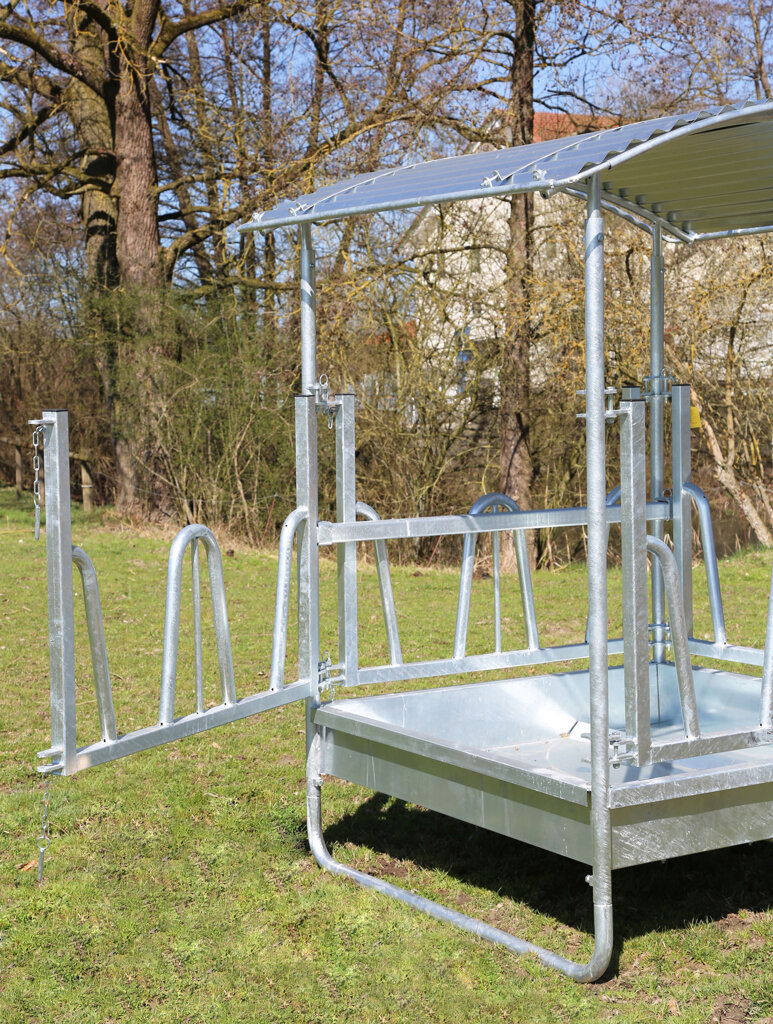 - 8 míst pro krmení - vhodné pro krmení kulatými a obdélníkovými balíky až do 1,4 m délky nebo průměru - povrch upraven pozinkováním při vysokých teplotách - 1 čtvercová trubková podpěra - 2 strany lze snadno otevřít pro plnění - optimálně nastavitelná výška dle zvířete - velmi malé ztráty krmiva - dodáváno jako ucelená konstrukce včetně obvodové ochrany okraje střechy, se třemi bezpečnostními bezpečnostními sponami - vnitřní rozměry: cca 1,45 x 1,45 m - kompletní rozměry L x W x H: cca 1,5 x 1,5 x 2,4 m