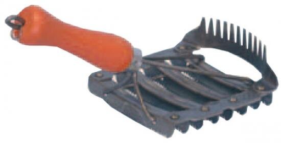 Pevná kovová konstrukce zajišťuje dlouhou životnost i při pravidelném používání ve stáji. Ergonomický tvar umožňuje pohodlný úchop a snadnou manipulaci i při důkladném čištění větších ploch těla.