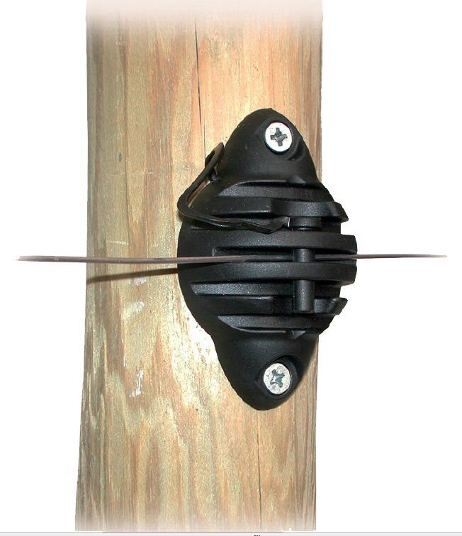 - Snadná instalace: Izolátor je vybaven vrutem pro jednoduché a pevné připevnění k dřevěným sloupkům, což zajišťuje stabilitu a spolehlivost ohradníku.