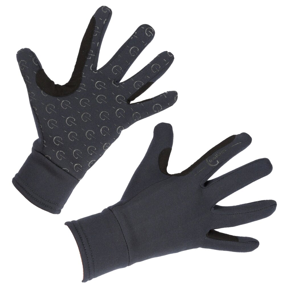 Velmi příjemné zimní jezdecké rukavice z pružného materiálu, s jemným fleecem uvnitř. Na dlani silikonový potisk ve tvaru loga Covalliero, díky kterému rukavice nekloužou.