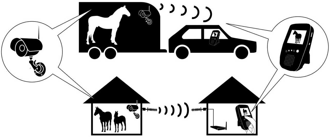 Kamera ve stáji a 2,5 "LCD monitor v domě umožňují optimální sledování vašeho zvířete, například před, během a po porodu.