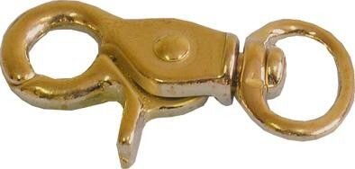 - Mosazná karabina s obrtlíkem, který umožňuje otáčení karabiny a lepší manipulaci.