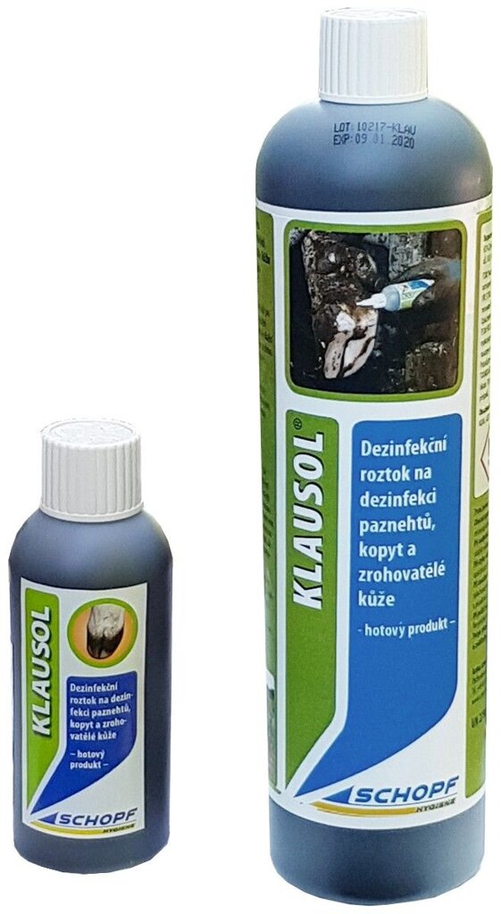 - Klausol je dezinfekční roztok na kyselé bázi pro hovězí dobytek a ovce na dezinfekci paznehtů, kopyt a zrohovatělé kůže.