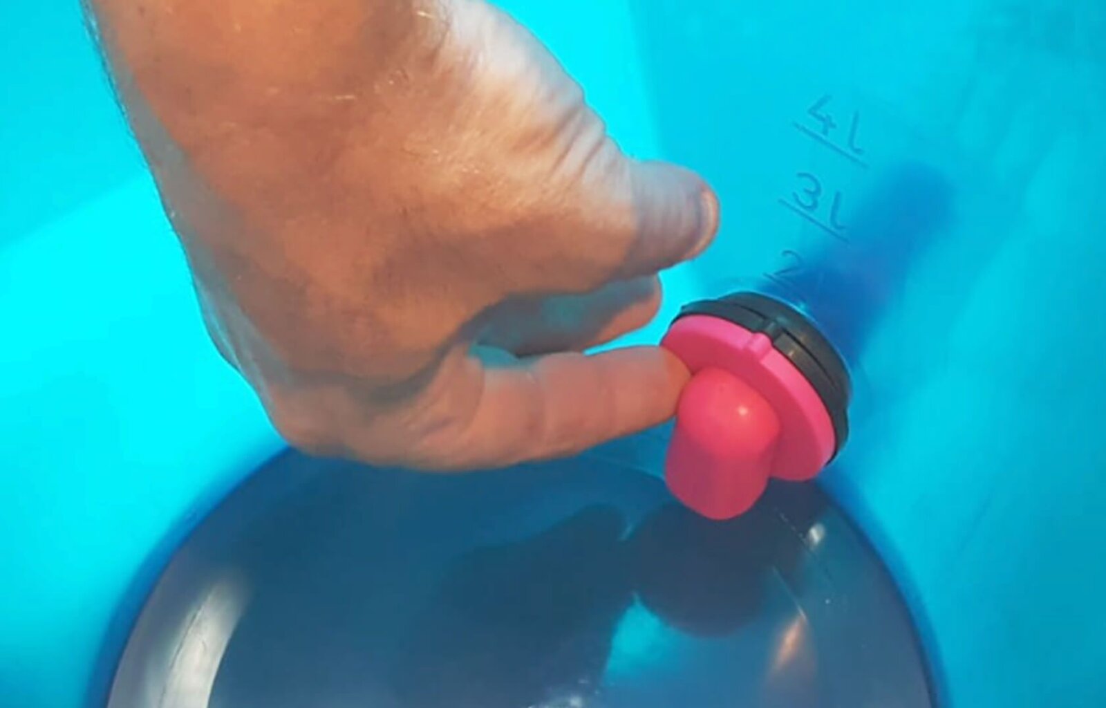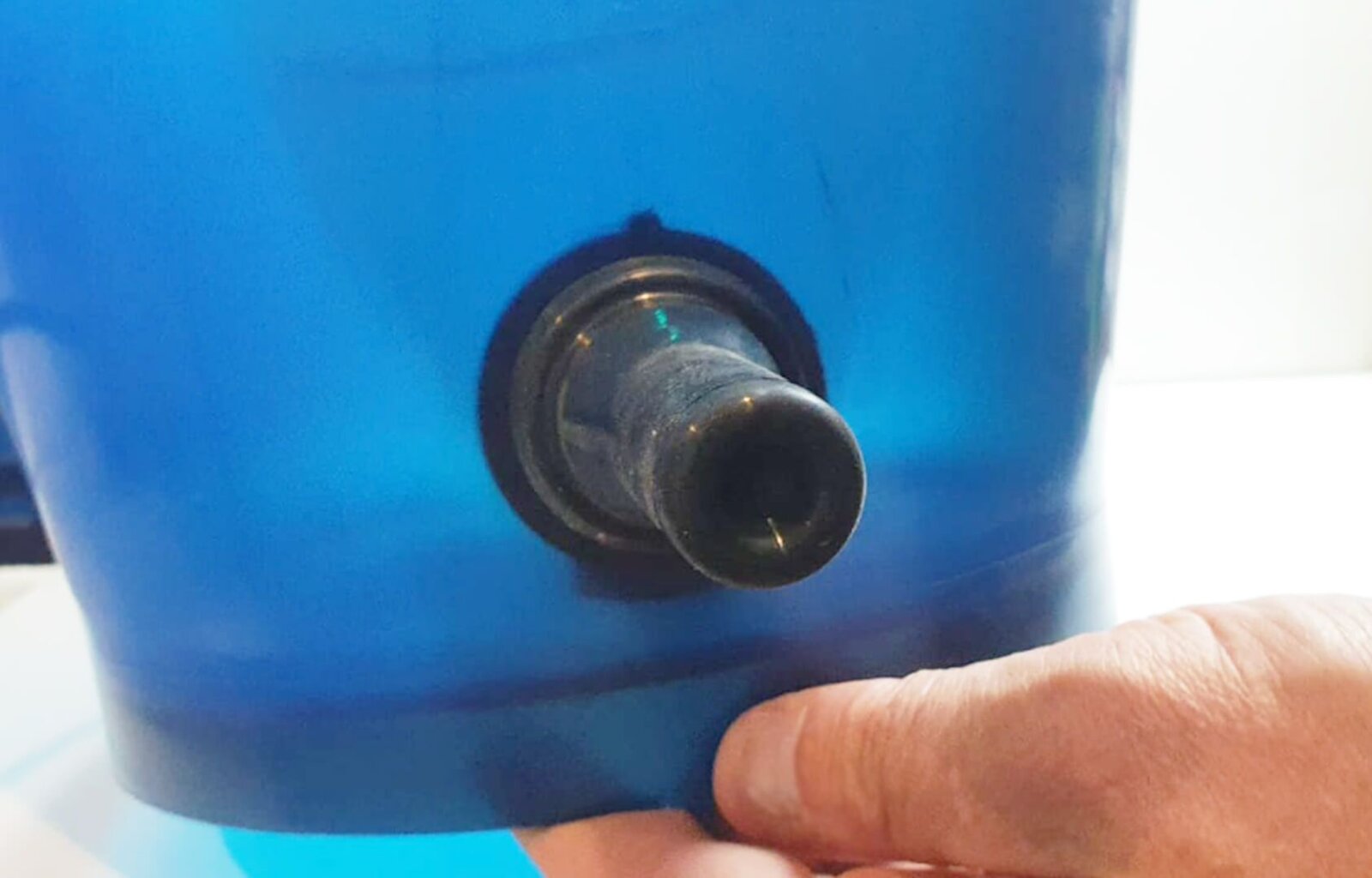 - Protáhněte dudlík s konektorem skrz otvor v kbelíku.
