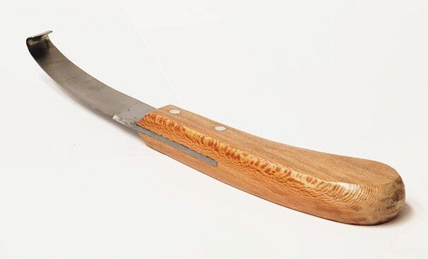 - Velká, lehce zakřivená čepel – vhodná pro úpravu větších ploch kopyta