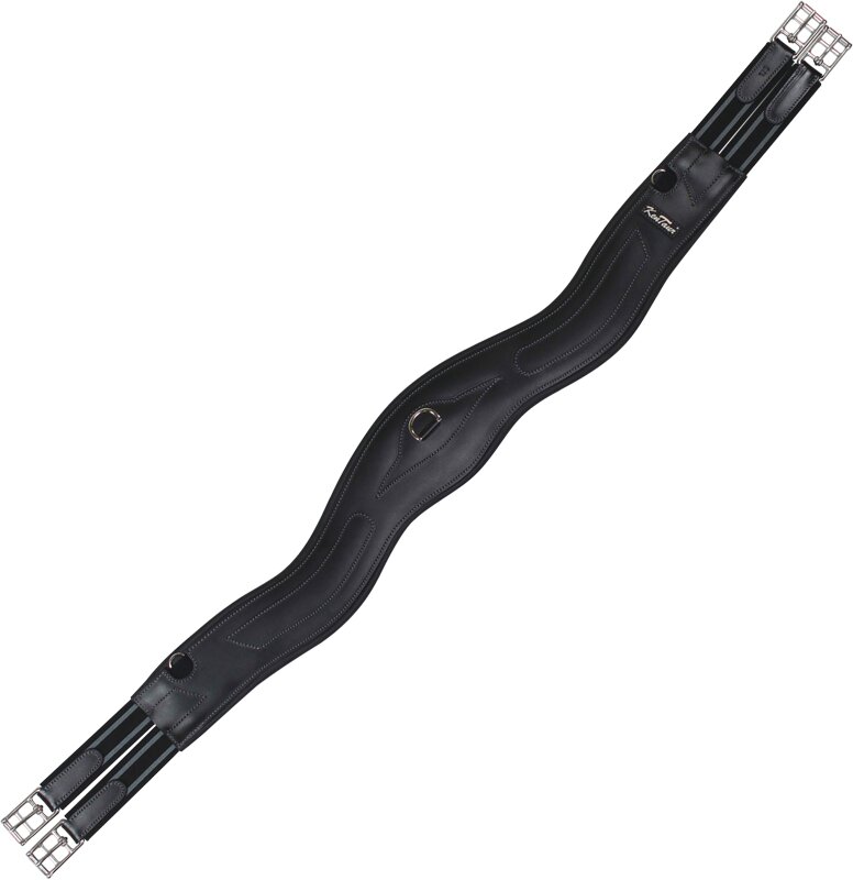 Vysoce komfortní, měkce polstrovaný, anatomicky tvarovaný kožený podbřišník s nerezovými přezkami a dotahovací gumou po obou stranách. Podbřišník má po stranách a uprostřed očka do kterých lze zapnout pomocné otěže či martingal.