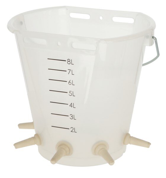 Krmící kbelík pro jehňata s 5 little softy dudlíky , bílý transparentní