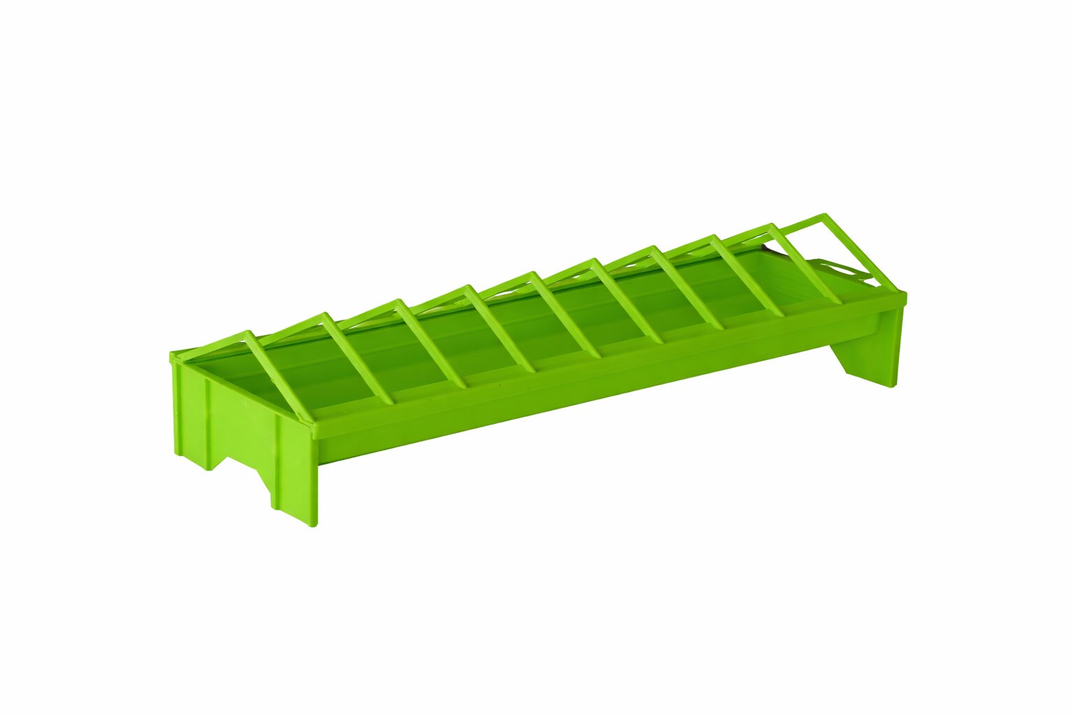 Praktické plastové krmítko určené pro krmení slepic, kuřat a další drůbeže. Díky podlouhlému tvaru o délce 50 cm umožňuje pohodlný přístup ke krmivu více kusům najednou.