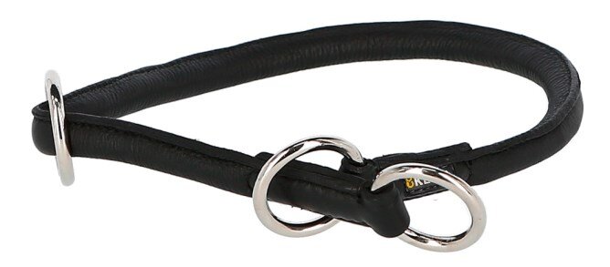 Kulatý stahovací obojek pro psy kožený, černý