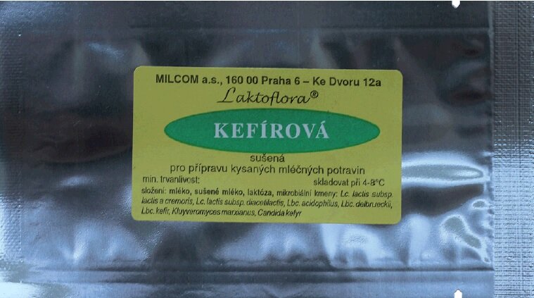 - mlékařská kultura Laktoflora® - balení obsahuje: 1 sáček sušené kultury (přímé očkování do 1 l mléka) - možno až 10x přeočkovat - vhodné i pro jogurtovače Charakteristika a využití: Kefírová kultura obsahuje mikrobiální kmeny Lc. lactis subsp. lactis a cremoris, Lc.lactis subsp. diacetilactis, Lbc. acidophilus, Lbc. delbrueckii, Lbc. kefir, Kluyveromyces marxianus a Candida kefyr. Kefírová kultura je vhodná pro přípravu lahodného osvěžujícího nápoje, který má mléčně nakyslou až slabě kvasničnou chuť. Vychlazená tvoří kompaktní sraženinu husté konzistence. Jeden sáček sušené kultury je určen pro přímé zaočkování jednoho litru mléka. Při dodržení dobrých hygienických podmínek lze docílit až 10-ti násobného přeočkování. Poté je třeba opět použít originální kulturu, aby bylo zajištěno správné zastoupení požadované mikroflóry.Zákazníci hodnotí