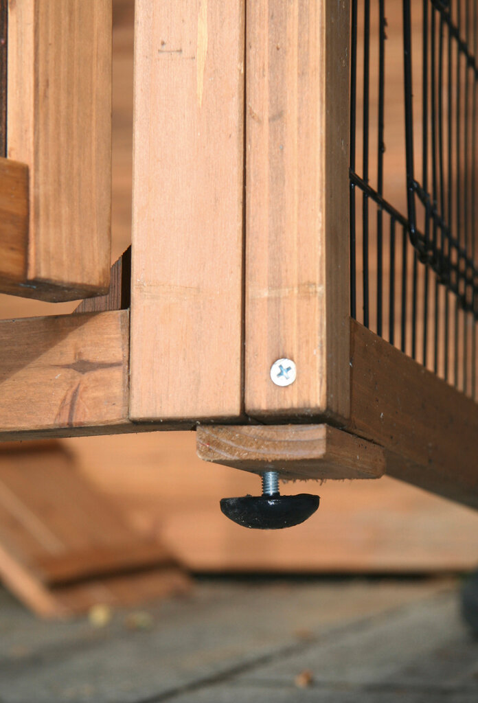 • příslušenství: 3 kukaně v každém poschodí, s možností přístupu zvenčí, rampa, 2 tyče ve výběhu, poplastovaná podlážka na výkaly