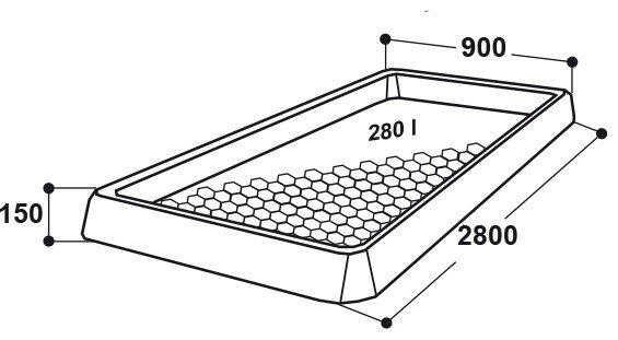 - Rozměry: 280 x 90 x 15 cm, objem 280 l