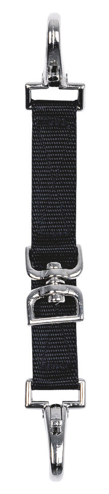 Lonžovací spojka z 3-vrstvého prošitého popruhu s poniklovanými karabinami a obrtlíkem uprostřed.• vyrobeno z 3-vrstvého prošívaného popruhu